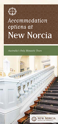 A six-page brochure offering an overview of what to do during your visit to New Norcia, including a town map