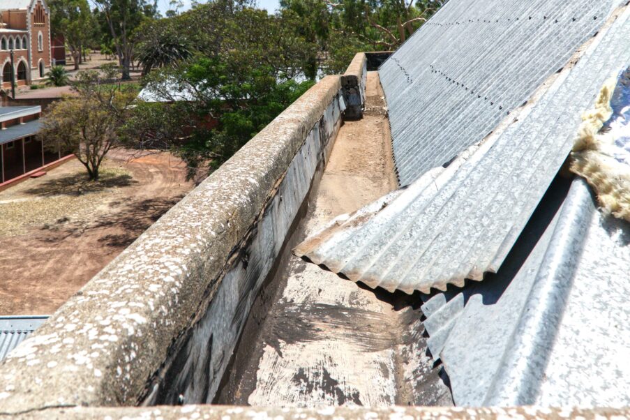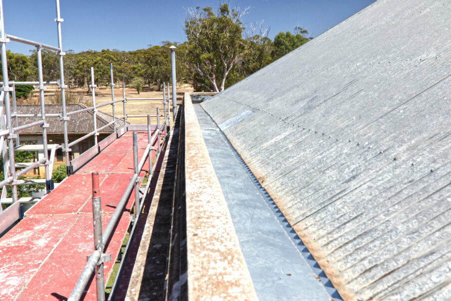 The original box guttering on the south face of the Old Convent dates back 100 years. In those days, builders and roof plumbers were limited to shorter lengths of sheet metal products, compared to this replacement which uses gutter lengths of up to 8 metres. They also did not have access to modern-day sealants and fillers widely used in the building industry today. This resulted in some very problematic gutter joints that had failed over time and allowed water ingress issues into the building ceilings and walls, causing damage. In the replacement process, Top Gun Roofing tradesmen have been able to eliminate water penetrating into the building for another 100 years!