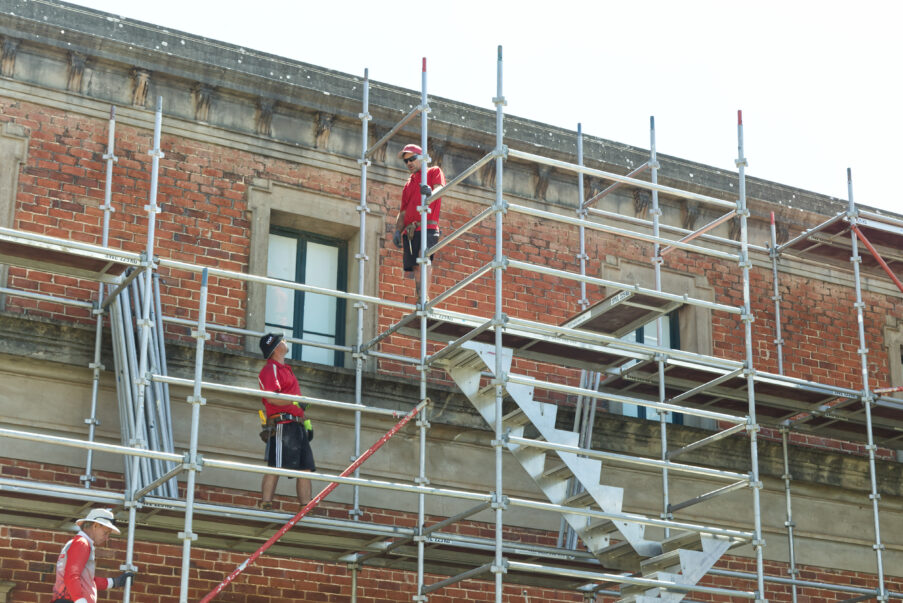 Extensive renovation work is being done on the roof systems of the Old Convent and Museum Art Gallery buildings. The box gutters, some parts of which are over a century old, require a sturdy maze of scaffolding to provide safe access for workers and contractors. In this case, the scaffolding was extensive and installed by QuickScaf.