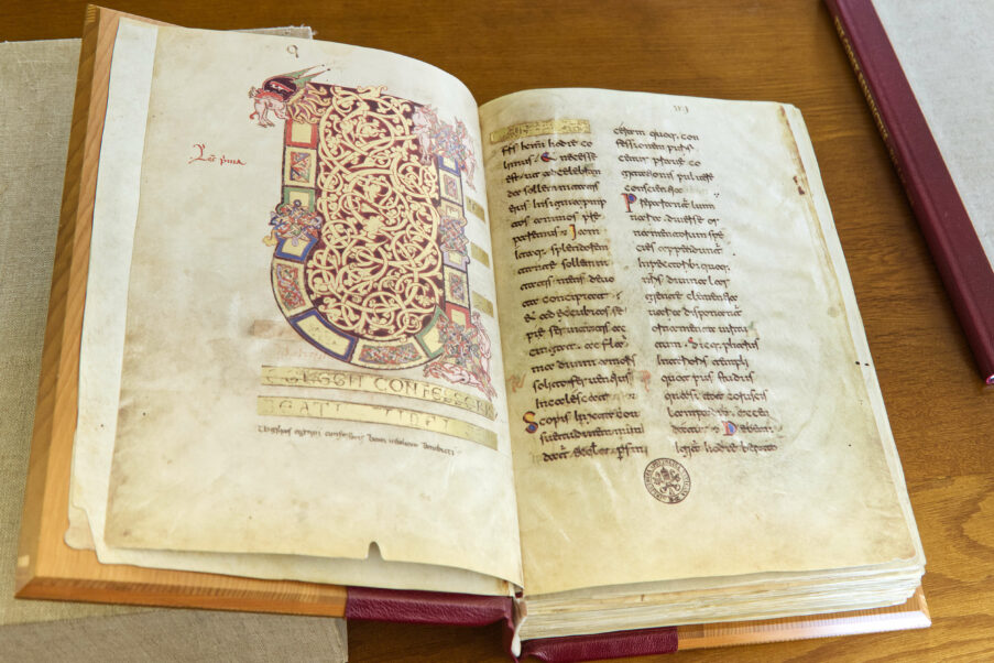 On New Year’s Eve 2022, Abbot John was up in the monastery library, showing the grand room to a couple who were spending a few days in the monastery guesthouse. Being Benedictine Oblates, they had a ‘family’ interest in seeing the library. As it was a Saturday, the Abbot was slightly less involved in the administrative aspect of his role and took the opportunity to show the visitors the part of the library that is housed in its original location on the first floor of the south wing.
