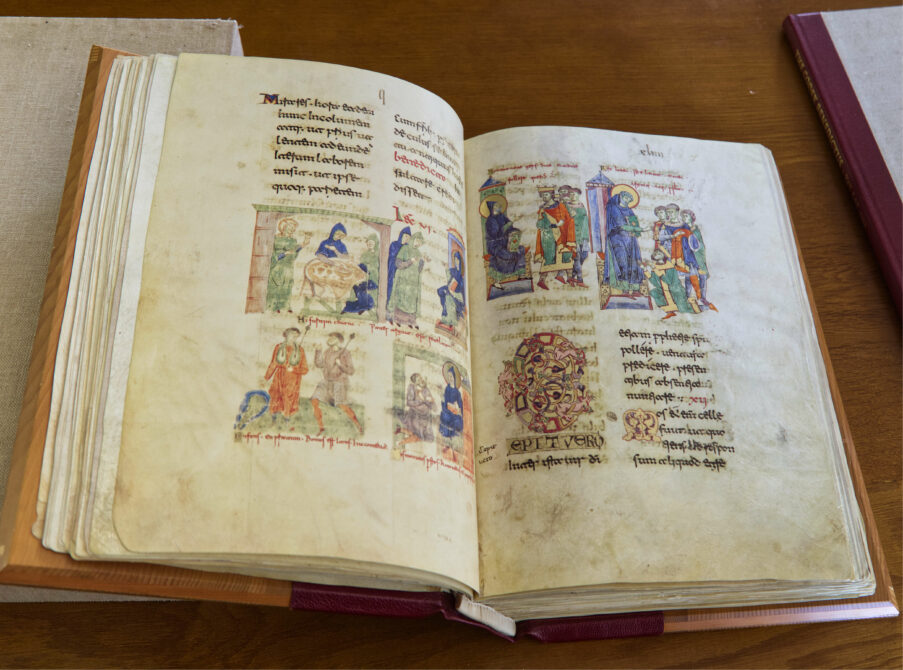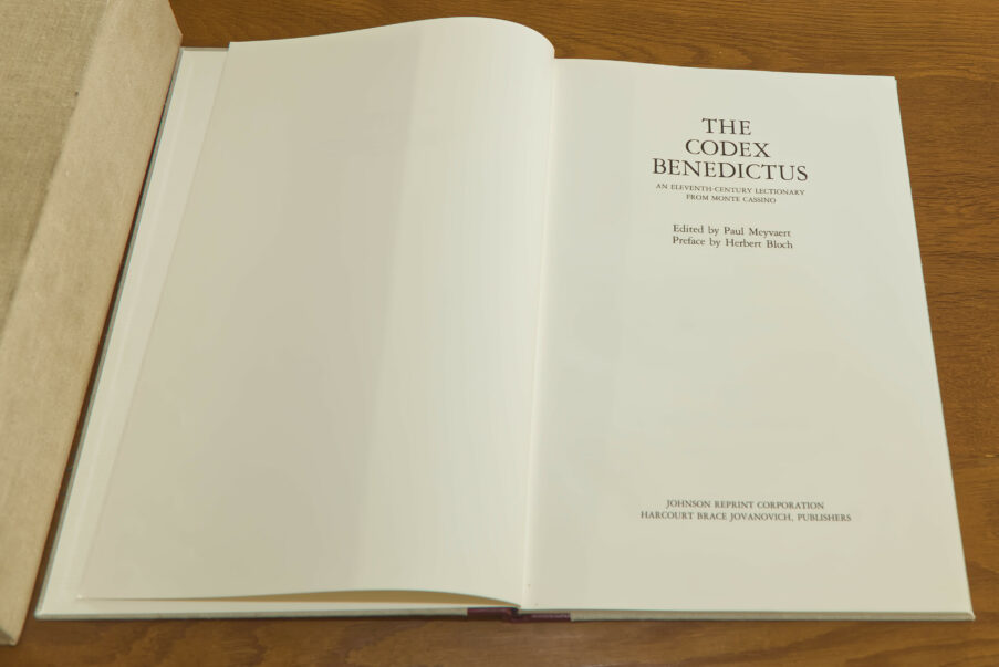 For a number of years, a particular item in the library holdings, too large and bulky to be placed upright on a shelf, and not something in regular use, had not been sighted. Published in 1982 and purchased in 1983, it is an elaborate facsimile of a mediaeval lectionary from the Abbey of Montecassino now located in the Vatican Library. The writer remembers having last seen it when it was housed in a cabinet in the main room under the section with books on monasticism and the Benedictine Order.
