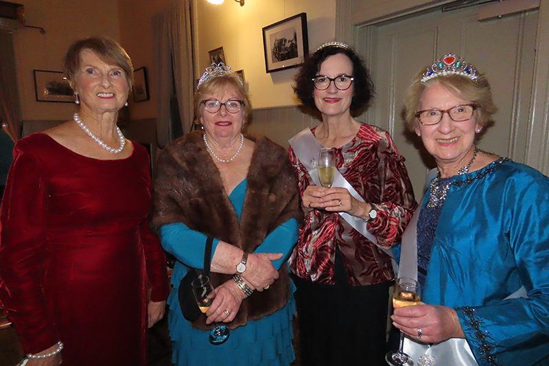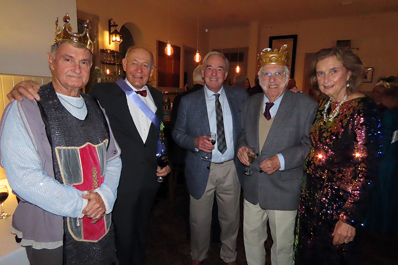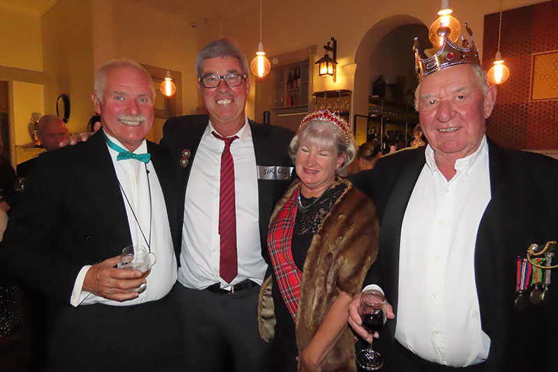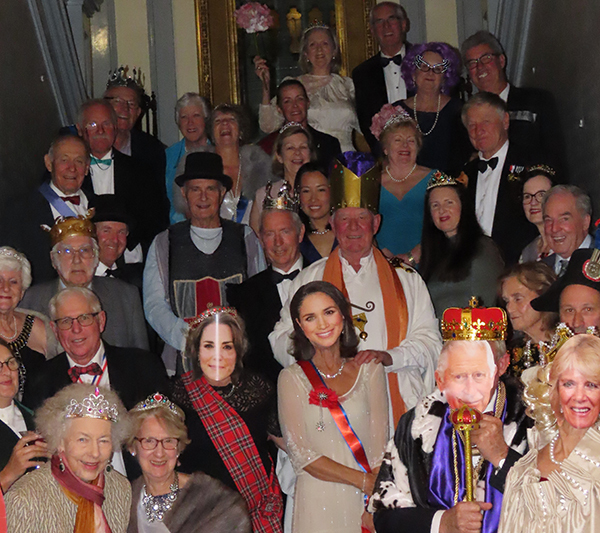 In grand style, Lyle Georgeson and Cathie Mackie drew a group and celebrated the event on the Saturday night of the coronation, 6 May, with a dinner at the Hostel. Guests started with pre-dinner drinks and sat down to a meal of shared antipasto platters, followed by a choice of salmon, steak or chicken for mains and fruit and ice-cream for dessert.