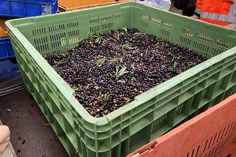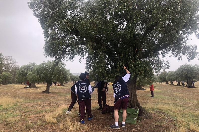 With community service a component of their curriculum, the students rallied to fill a large crate to the brim with the black and green fruits. Despite the pouring rain, the students reported having had a fun time picking olives.