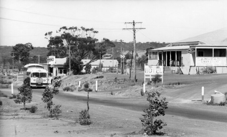 The first image on the left is Lanigan’s Store when it was in full flight. The garage (current Roadhouse is to the rear. Note the old-fashioned coach pulled up for the passengers to get food and drinks from the store).