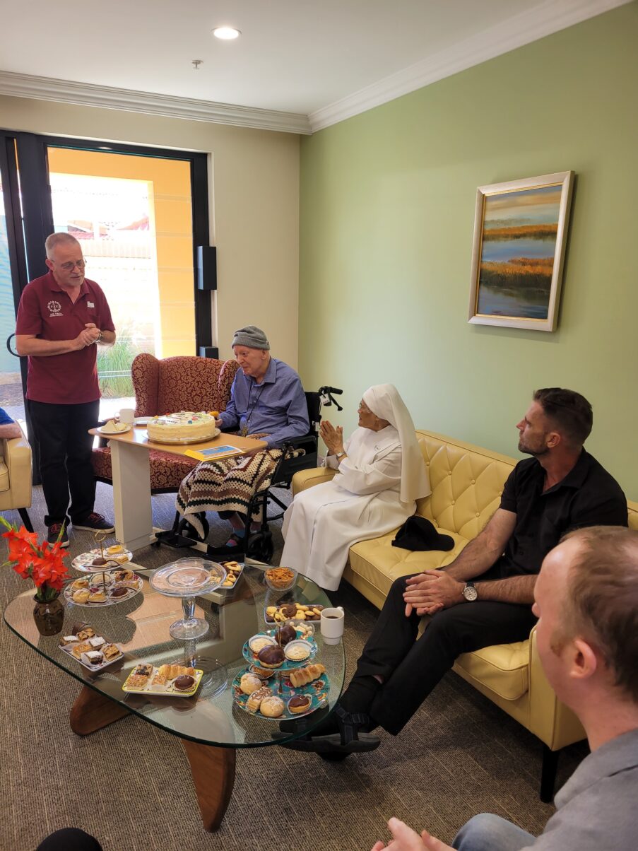 On the feast of the Passing of St Benedict (March 21st) the monastic community travelled to Perth to visit Abbot Bernard Rooney in celebration of his diamond jubilee of ordination at the Little Sisters of the Poor (Glendalough) where he now resides in state-of-the-art care.