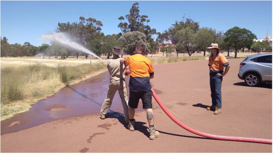 The unit, which delivers enormous pressure to help suppress a fire, was hooked up to the fire hydrant in the Guesthouse carpark. The training is important especially now that the warm weather has arrived, along with the warnings regarding a high-risk fire season this summer. It is imperative that the team are familiar with how to handle the equipment safely and efficiently.