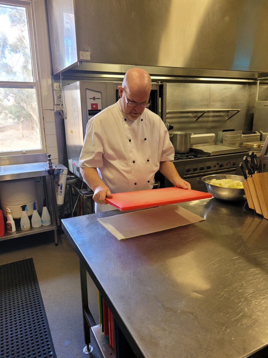 Abbot John being supervised by central catering manager Marlon as part of food safety supervisor course.
