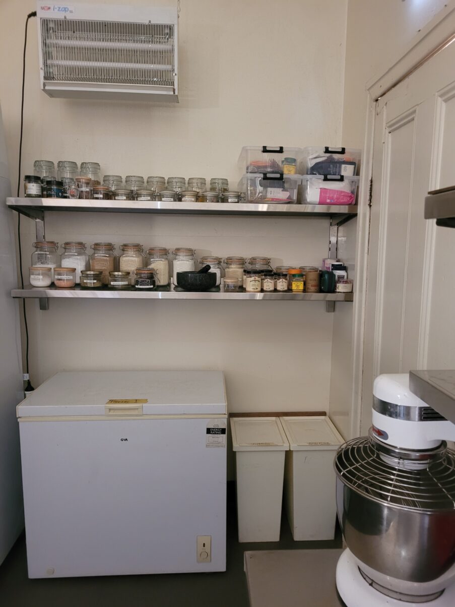 New stainless-steel shelving in hostel kitchen