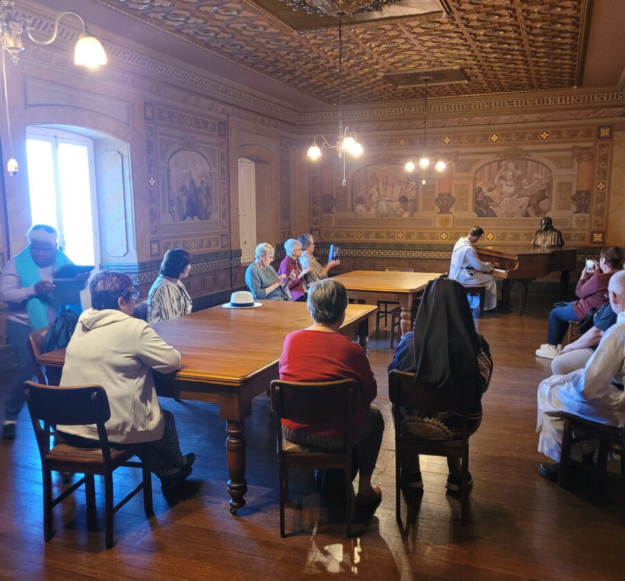 "On behalf of all the Dominican Sisters who visited New Norcia last week, I want to thank you so much for the hospitality shown to us – joining for Midday prayer, lunch in the refectory and the inspirational - and educational – tour of the monastery. Everyone was so impressed and loved seeing your ‘treasures’ in the different rooms and library, not to mention the beautiful piano playing from Fr Robert – what a treat! We all appreciated the service at dinner, please thank the monks involved as it surely was a real mark of Benedictine hospitality. The Sisters were also surprised and grateful for your thoughtful gift, which will be a reminder of their visit. It truly was a wonderful day. We have made a $500 donation for your Monastery library – to use in whatever way you need, as we recognise the work involved in keeping sacred things so carefully. With much gratitude and a remembrance in our prayers."