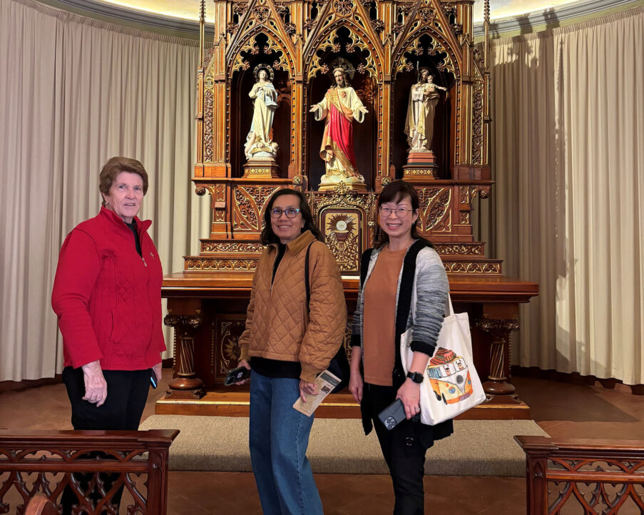 They arrived in dreadful weather at 10.30 and were given a tour of the Archives during which they inspected a copy of one of Bishop Salvado’s diaries along with Salvado-era registers. After the archives and prayers with the monks, they visited the museum and art gallery, St Gertrude’s College and the church.