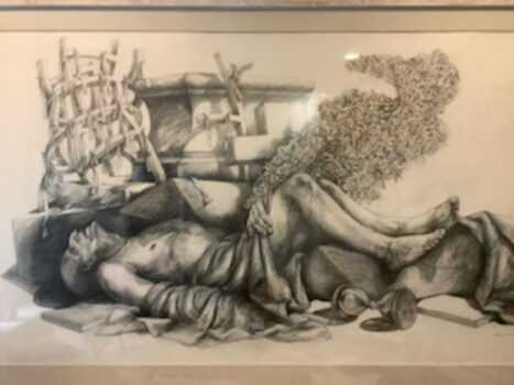 Asked about its history, Kim said, amongst other things, “We bought the drawing then [in Scotland in 1990] and it has travelled the world with us, Aberdeen, London, northern Holland and then back to Perth. So nice to find a permanent home for it. Hopefully you can find a wall big enough to accommodate it!”